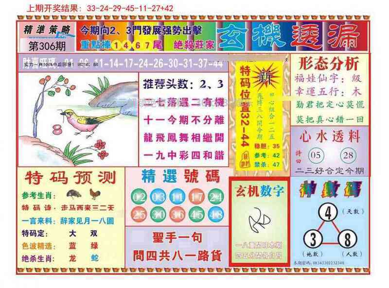| 307期⑦码 | 08 04 26 46 09 37 18 | 开:發00中 |